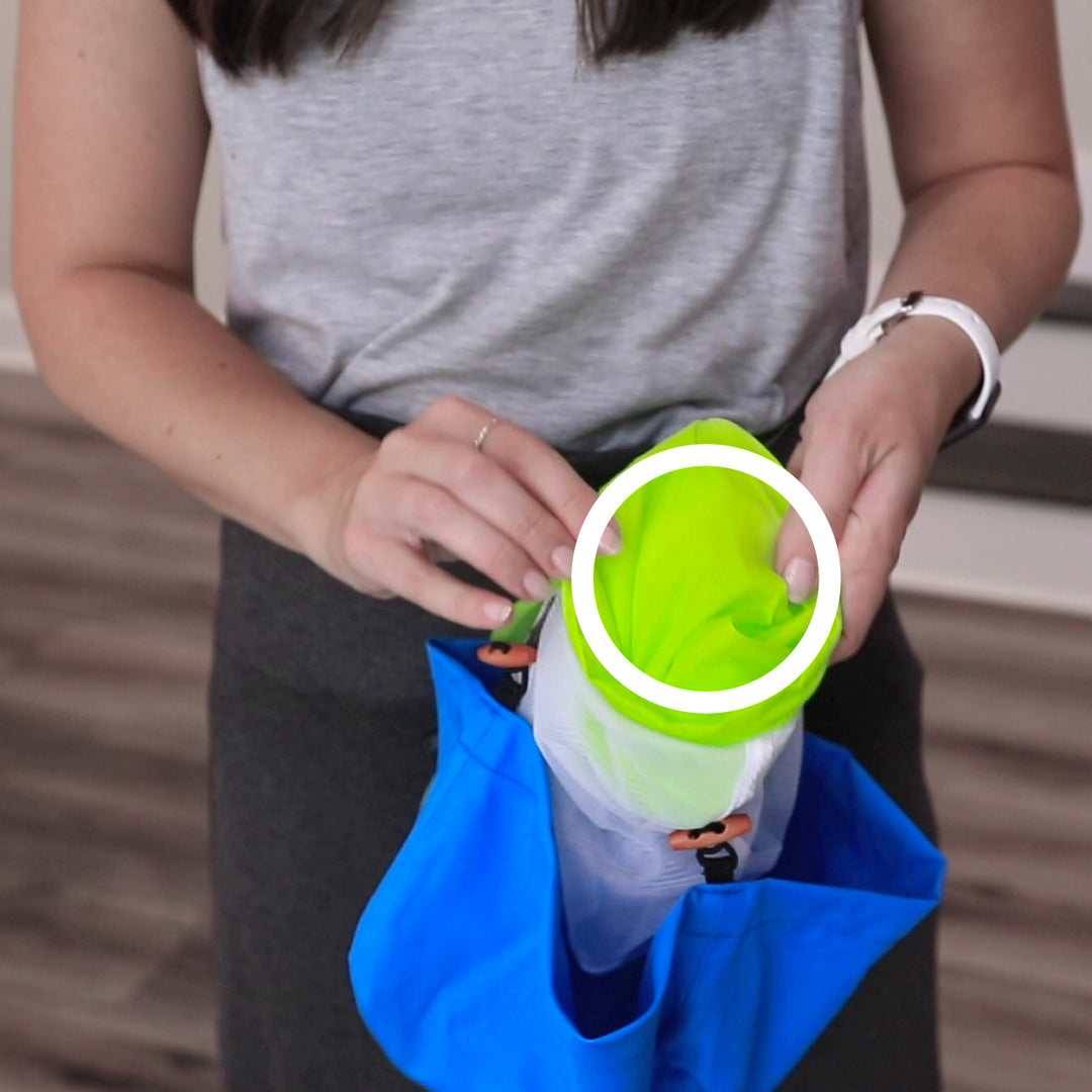 Wrap the outer shell around the collapsed ring and roll it into the pouch