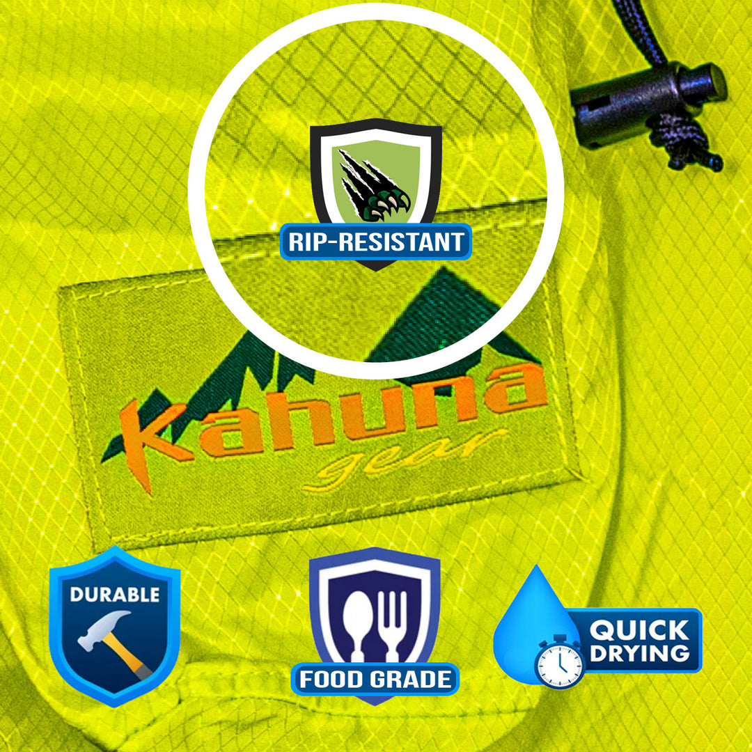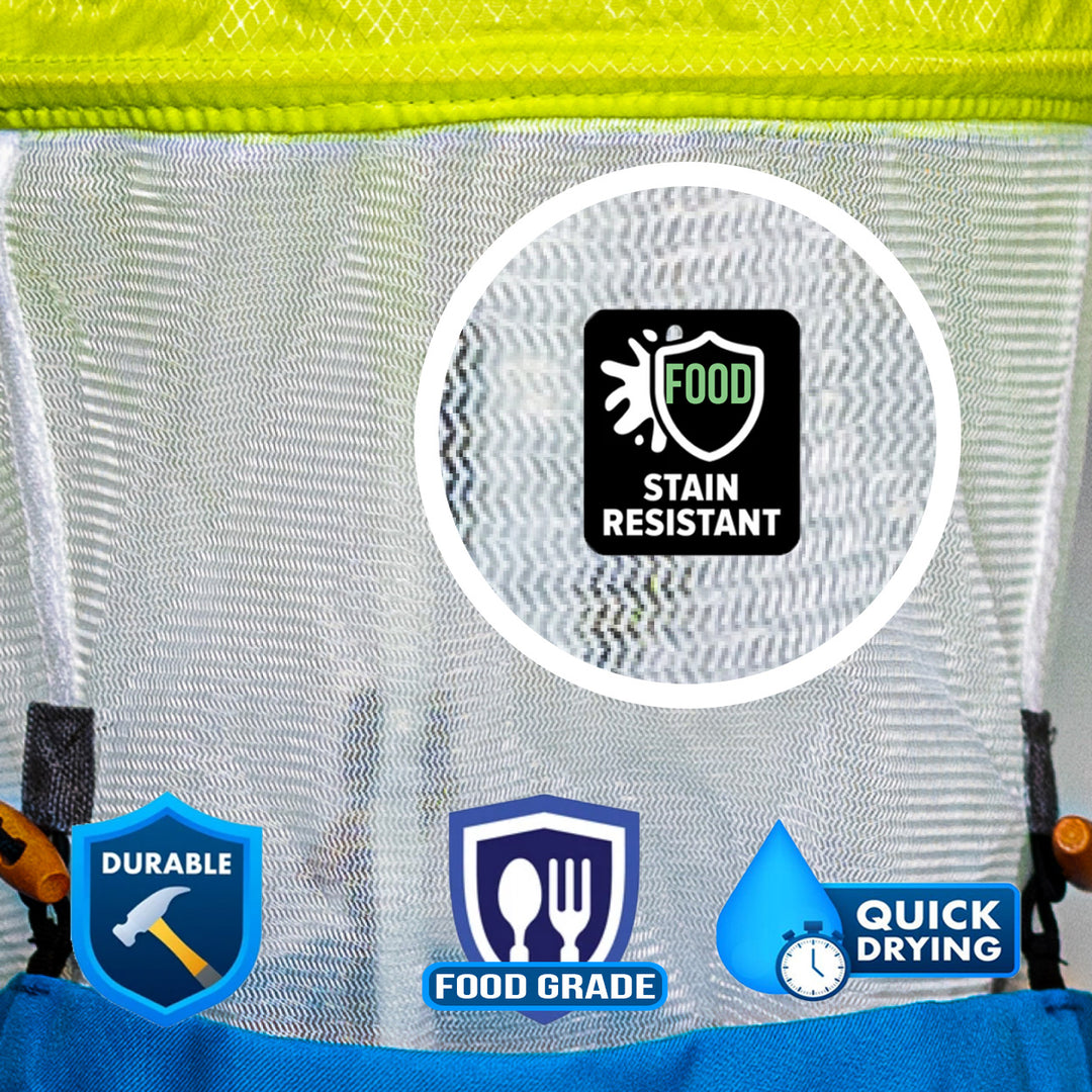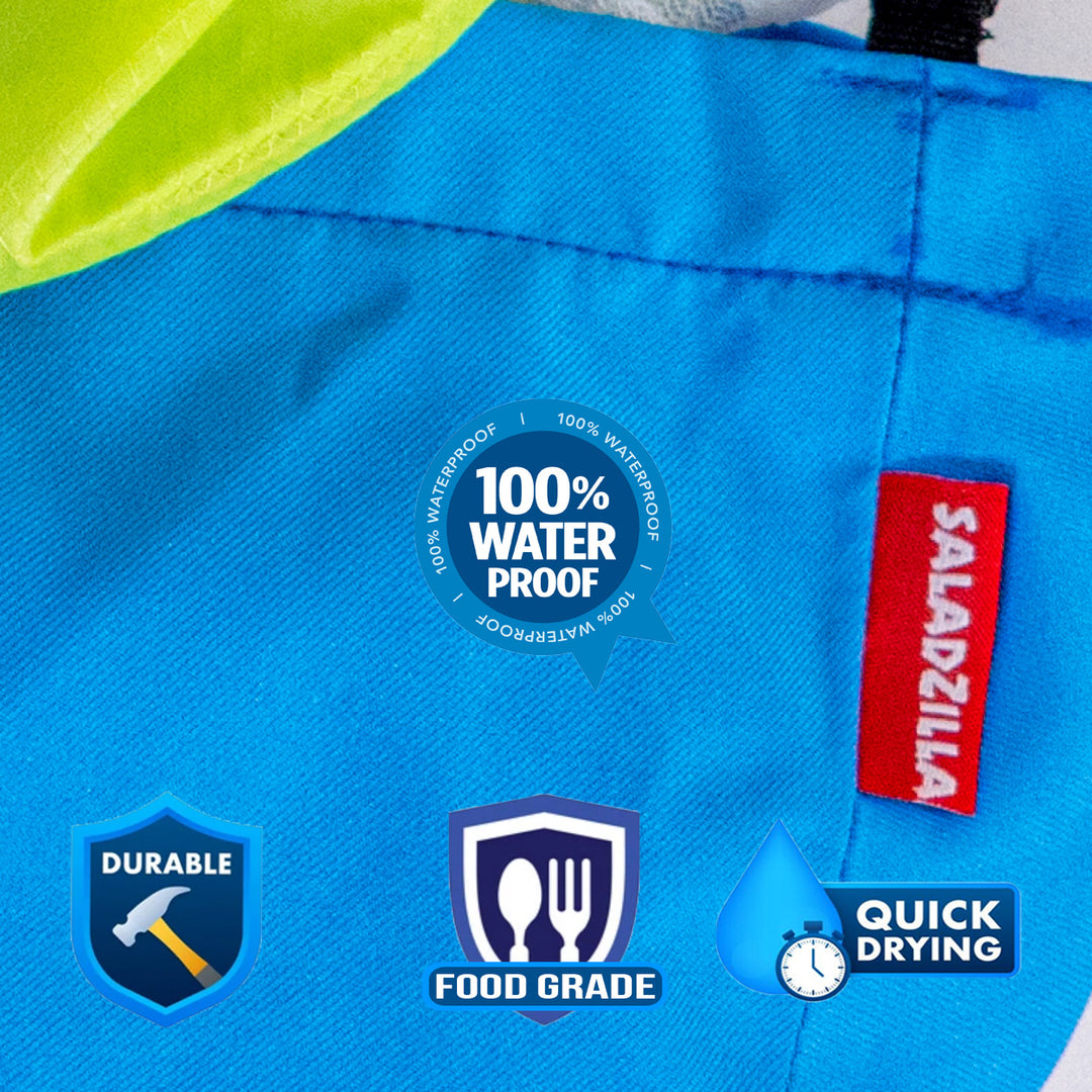 • 🔨DURABILITY - No Plastics to Crack or Mechanical Parts to Break: Saladzilla's made of diamond ripstop fabric. It's the same material used in the high-end backpacking equipment. Hence, tough for the outdoor environment yet light in weight for performance. Our proprietary fabric is free of harmful chemicals and food-safe. It's also quick to dry.